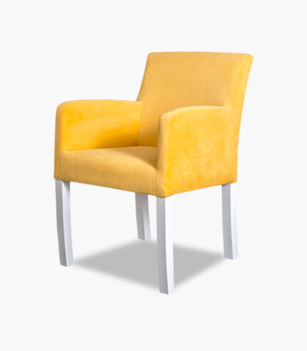 Rembourrage en mousse. assise en mousse HR, suspension par sangles. Tissu anti-tâche. Structure: en bois massif chêne ou hêtre. Teinte préfabriquée ou avec du vernis satiné