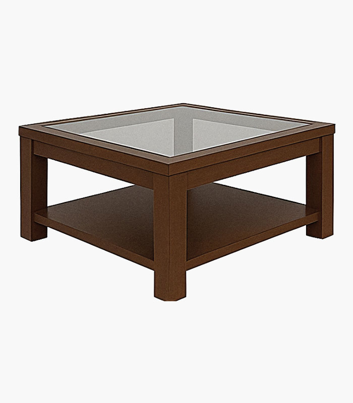 Plateau en verre, structure de la caisse en bois, teinte préfabriquée ou finition vernis