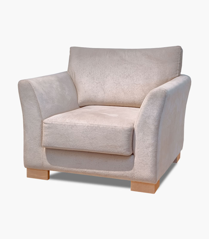 Rembourrage en mousse. Coussins d’assise en mousse HR, suspension par sangles. Tis su anti-tâche. Structure en bois