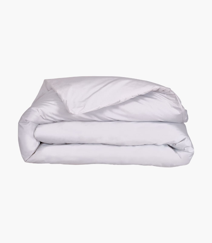 Couette en nappe de fibres siliconées creuses conjuguées. Enveloppe en polycoton