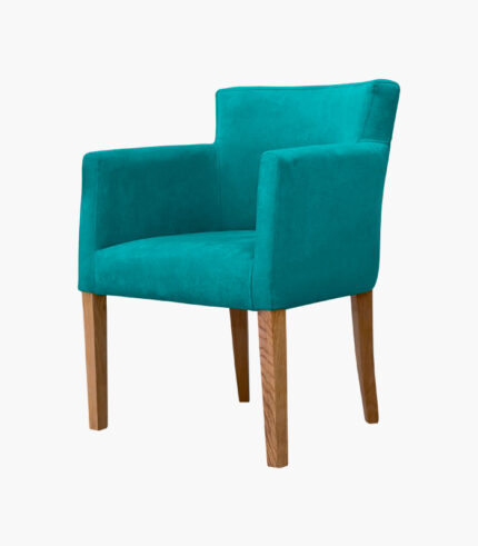 Rembourrage en mousse. assise en mousse HR, suspension par sangles. Tissu anti-tâche. Structure: en bois massif chêne ou hêtre. Teinte préfabriquée ou avec du vernis satiné