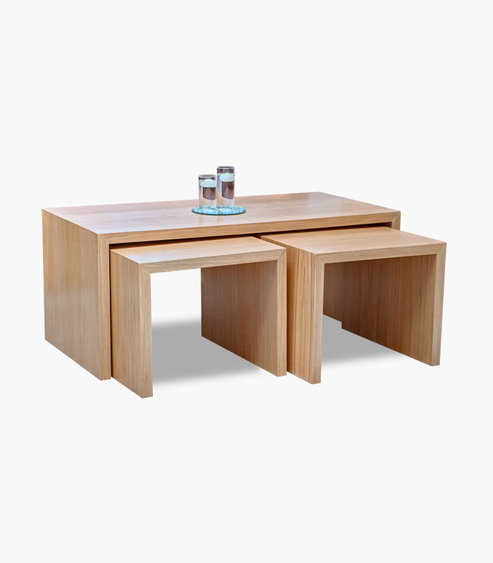 Structure et piètement : en bois massif chêne ou hêtre. Teinte préfabriquée ou avec du vernis satiné.