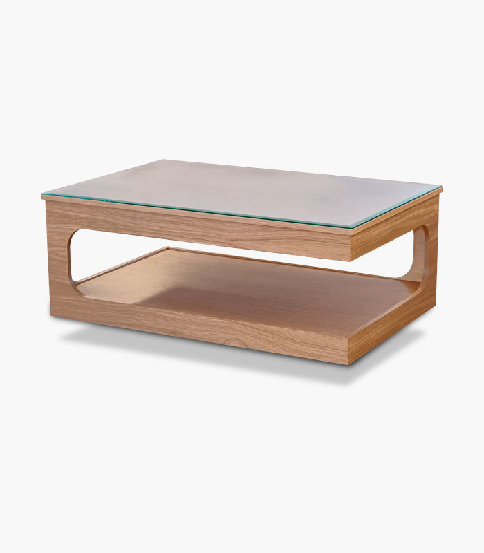 Structure: en bois massif chêne ou hêtre avec un plateau en verre. Teinte préfabriquée ou avec du vernis satiné.