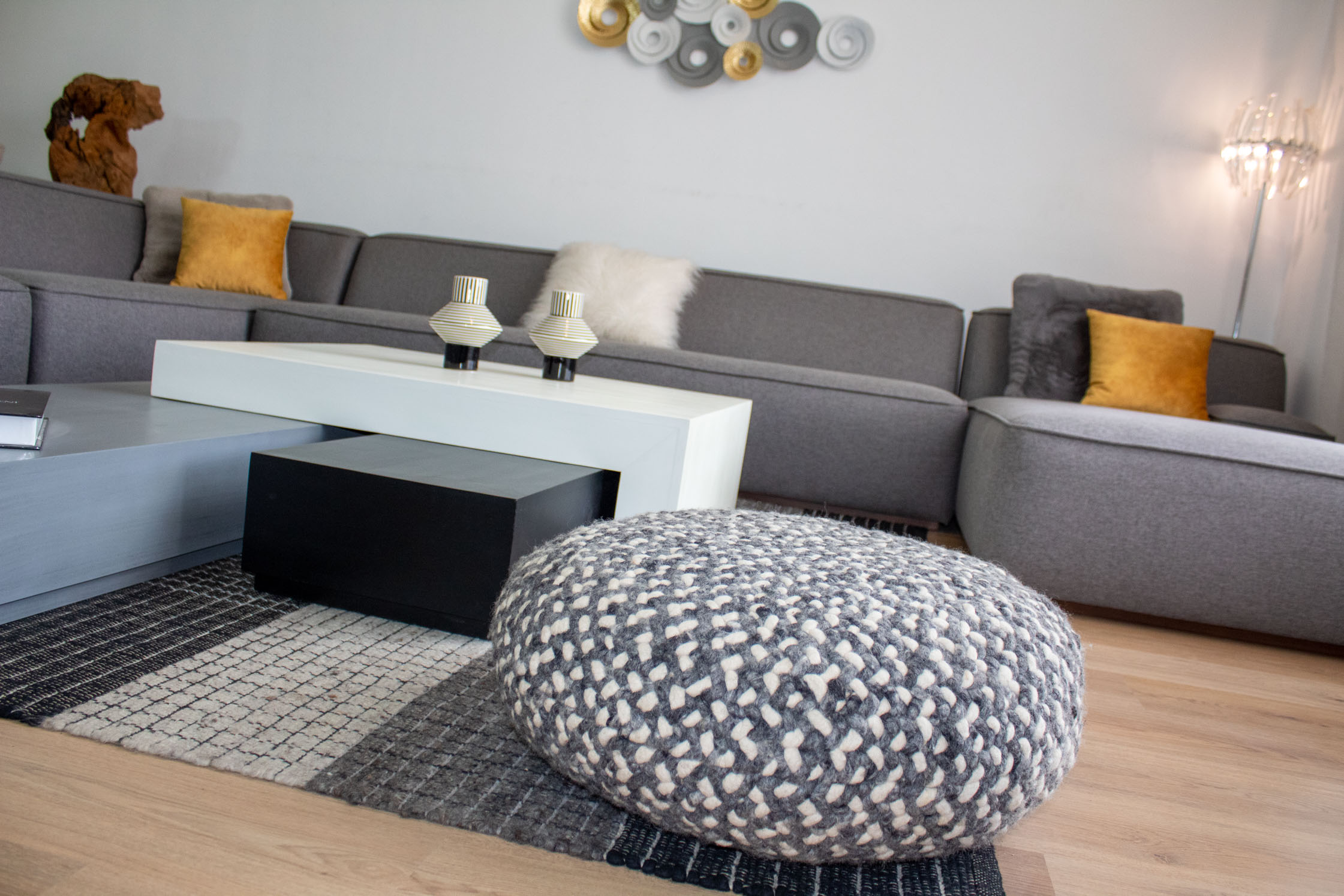 OPALE est recommandé avec une table basse et des poufs OPALE