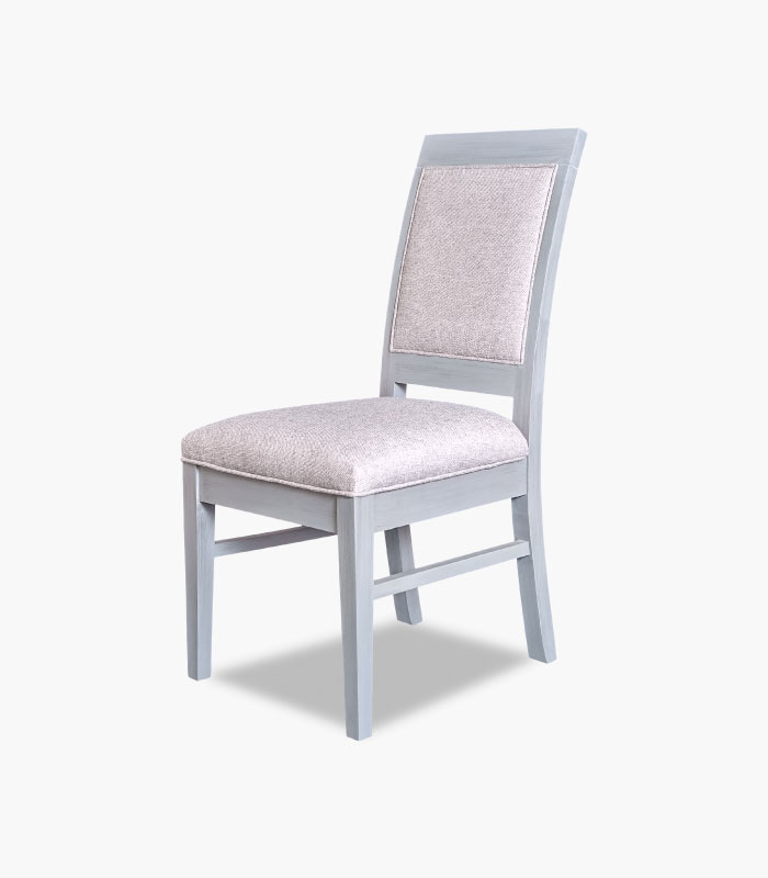 Rembourrage en mousse. assise en mousse HR, suspension par sangles. Tissu anti-tâche. Structure: en bois massif chêne ou hêtre. Teinte préfabriquée ou avec du vernis satiné.