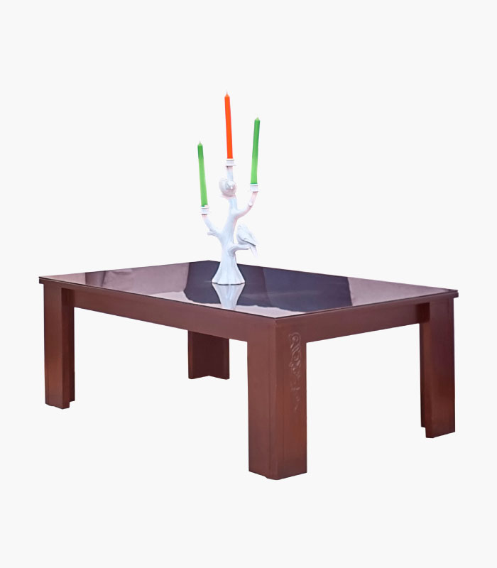 Structure: en bois massif chêne ou hêtre avec un plateau en verre. Teinte préfabriquée ou avec du vernis satiné.