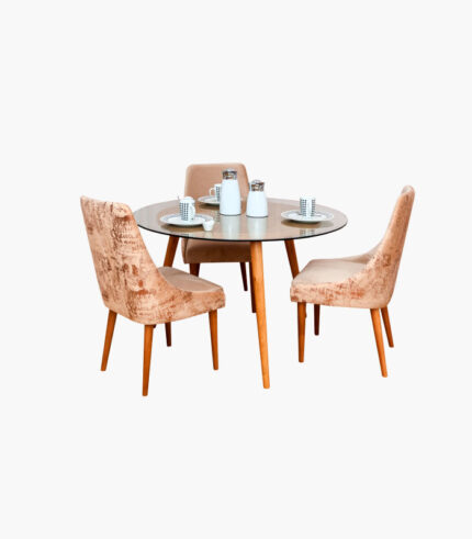 Structure et piètement : en bois massif chêne ou hêtre avec motif ajouré et un plateau en verre. Teinte préfabriquée ou avec du vernis satiné.