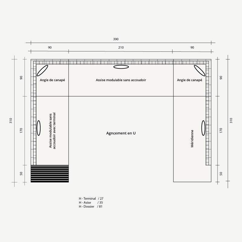 Nos experts sont à votre disposition pour vous guider dans le choix des dimensions qui conviennent le mieux à votre salon. Nous tenons compte de chaque détail, de la longueur et de la profondeur des banquettes jusqu'à la hauteur des dossiers, afin de garantir un ajustement parfait et une harmonie visuelle dans votre espace.